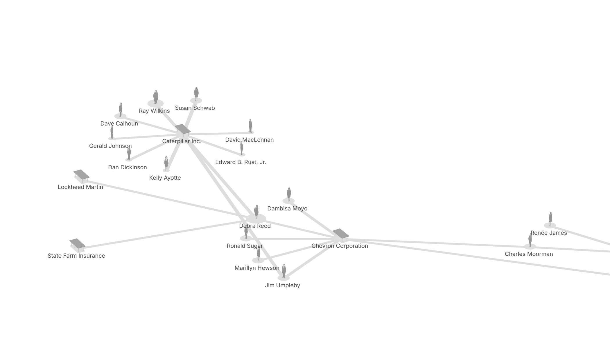 A proposito di linee e punti, di network e di potere, qui un tool che ricostruisce l’intricata rete che unisce i board delle maggiori corporation mondiali.