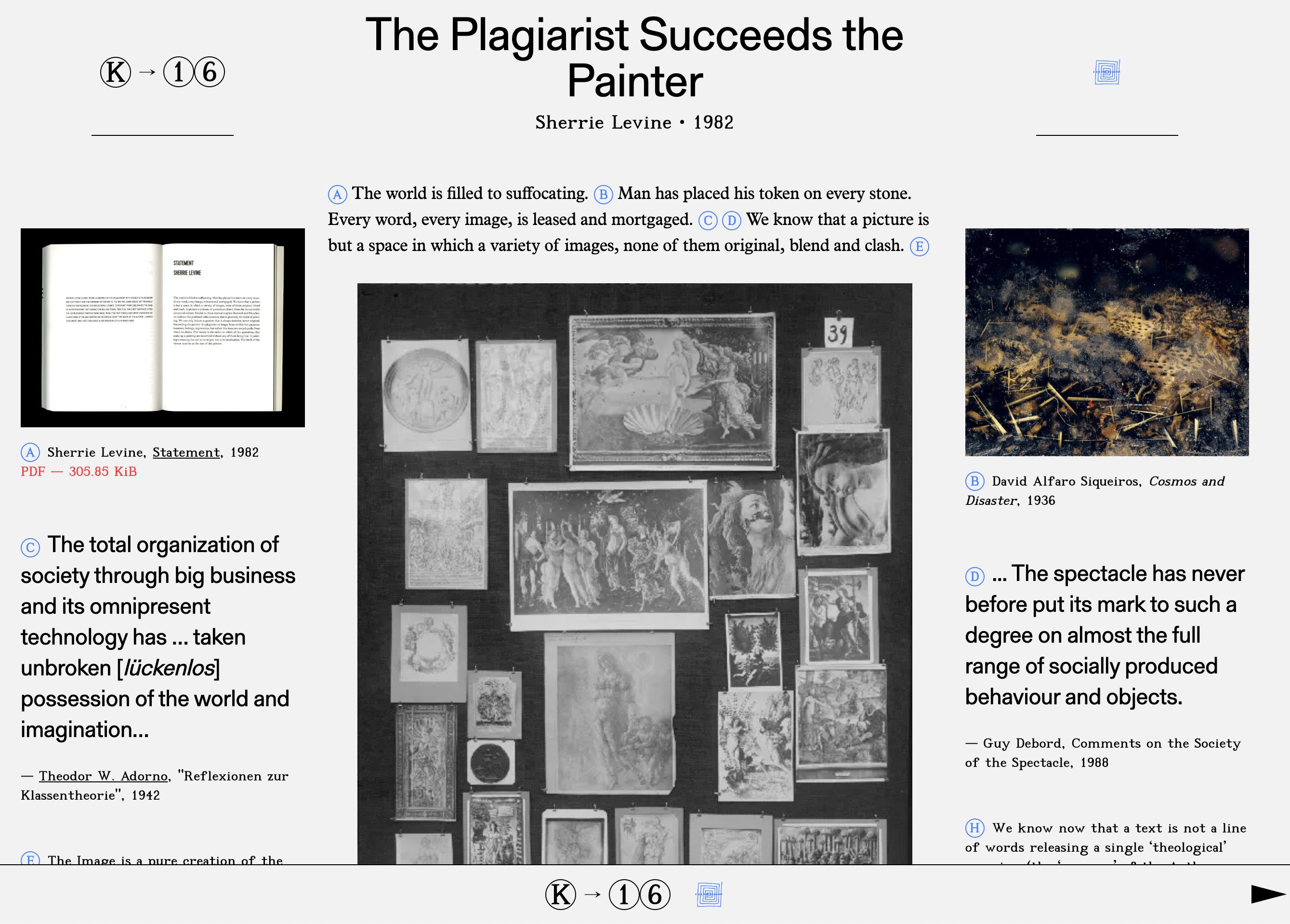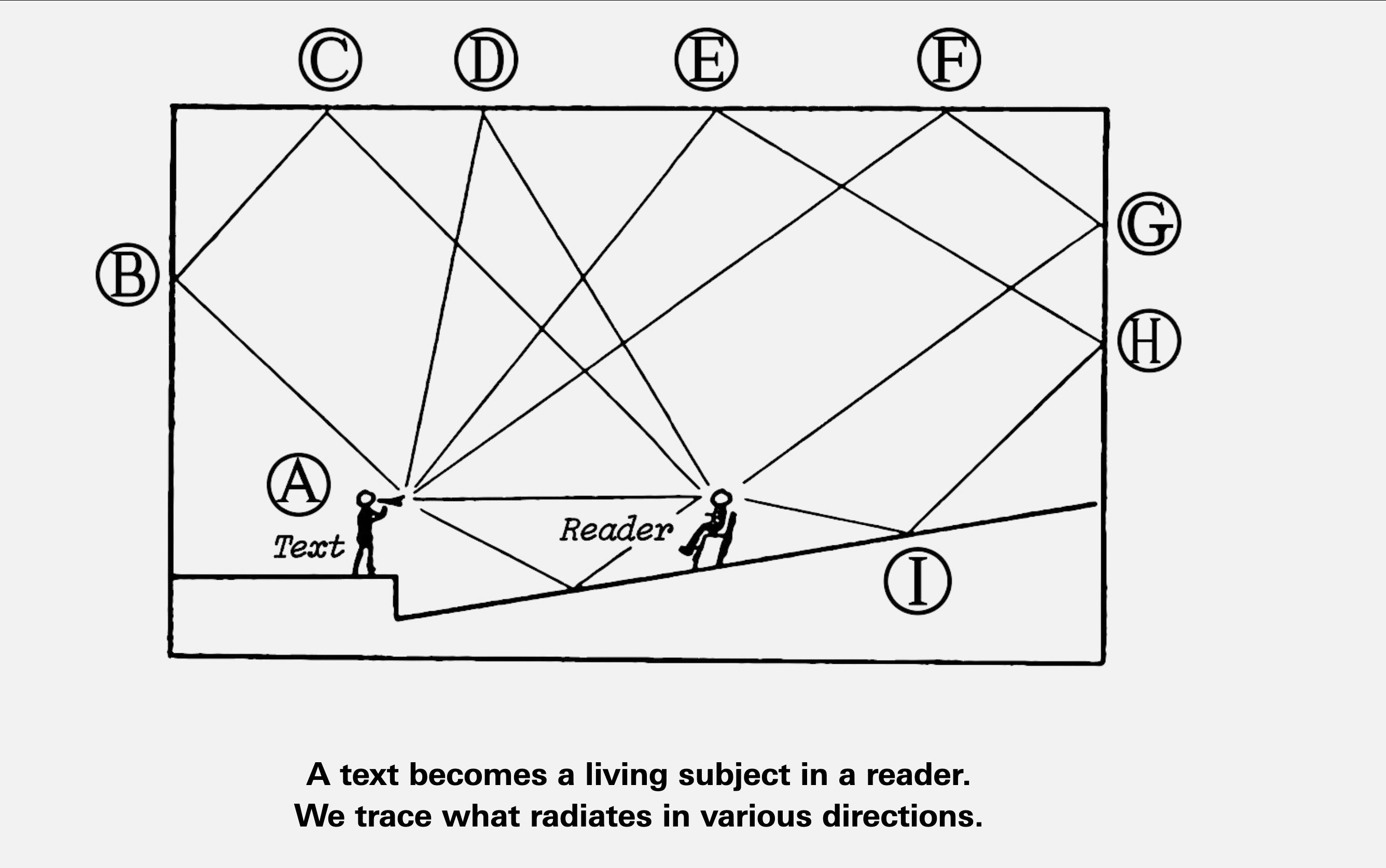Ogni pagina si trasforma in una bacheca, in cui un coro di voci offre una prospettiva policentrica, non lineare intorno a una breve citazione proveniente da un libro.