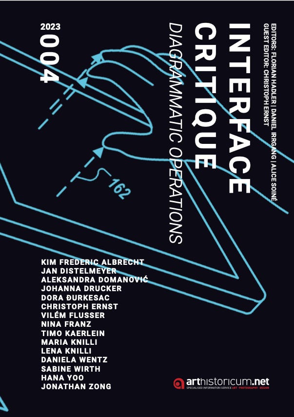 La diagrammatica studia “le proprietà conoscitive dei segni relazionali esternalizzati”, e per questo è strettamente legata agli studi sulle interfacce: una GUI, ad esempio, funziona distribuendo elementi semiotici nello spazio, creando un ambiente operativo che permette inferenze e azioni. Il quarto volume di “Interface Critic”, DIAGRAMMATIC OPERATIONS (disponibile in pdf a questo link), indaga i legami tra forme semiotiche della visualizzazione, principi operativi che le sostengono, radici storiche dell’interazione diagrammatica e pratiche progettuali che modellano il nostro incontro con la tecnologia.