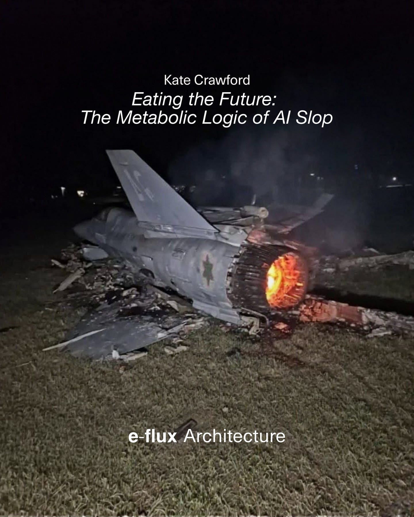 Remix e detriti. Sul nuovo e-flux Architecture, Kate Crawford ci racconta della logica metabolica dell’AI, che IA consuma risorse reali, rigetta “detriti digitali” e poi li reimmette nel circuito come nuovo cibo per altri modelli, in una spirale che continua a stringersi.