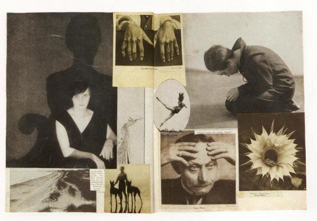 Hannah Höch conservava album di ritagli presi da riviste e giornali. Questi esempi risalenti al 1933 mescolano discipline diverse e danno pari dignità a politici e botanica, glamour hollywoodiano ed etnografia, miracoli dell’ingegneria e ballerine. Anche in queste pagine apparentemente assemblate a caso, lo sguardo straordinario della Höch genera composizioni memorabili.